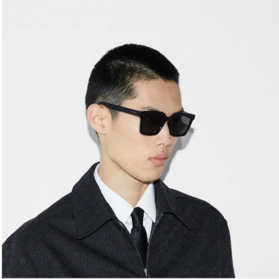这款方形镜框太阳眼镜以光泽感黑色注塑材质匠心打造,巧妙融入富有现代感的纯灰色镜片,令整个设计愈发丰满。镜腿处的珐琅Gucci标识细节增添雅致格调