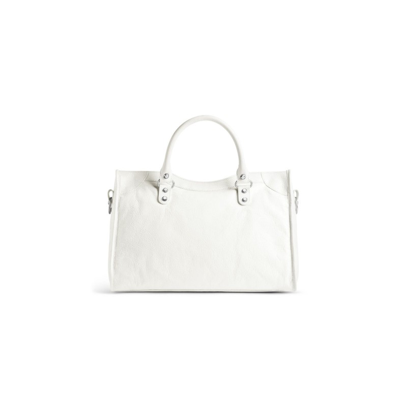 Le City白色细纹羊皮革中号手袋,饰以闪亮银色金属配件